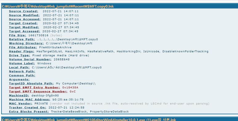 - LECmd 이용하여 분석