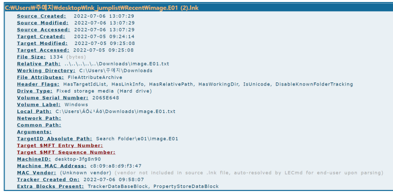 이게 중요한 이유는 lnk를 통해 어떤 볼륨에 존재했던 파일인가를 알 수 있기 때문이다.